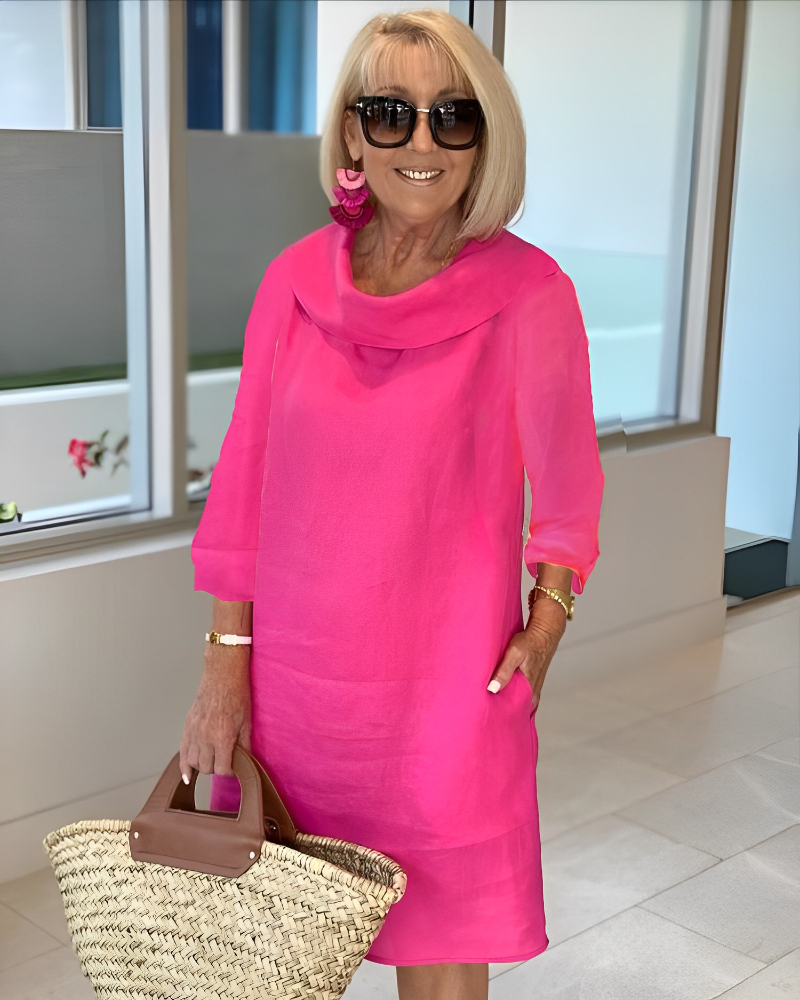 Pile Collar Short-sleeved Solid Color Casual Cotton and Linen Dress