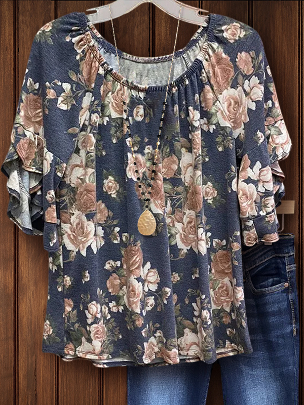 This is a casual and playful top with a soft and comfortable cotton material. The sweet bud sleeves and the exquisite floral print are a perfect combination. I believe you will like it!