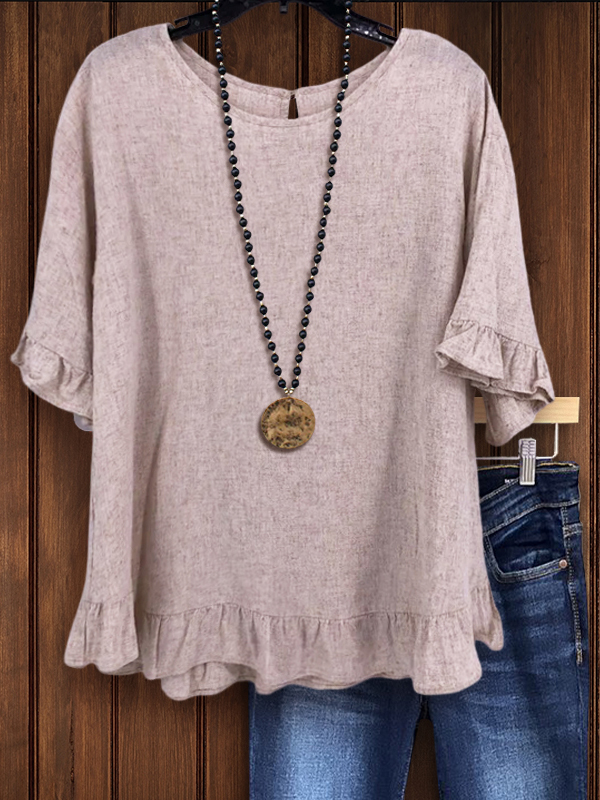 Cotton Linen Polka Dot Bat Sleeve Top