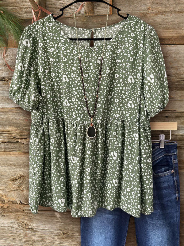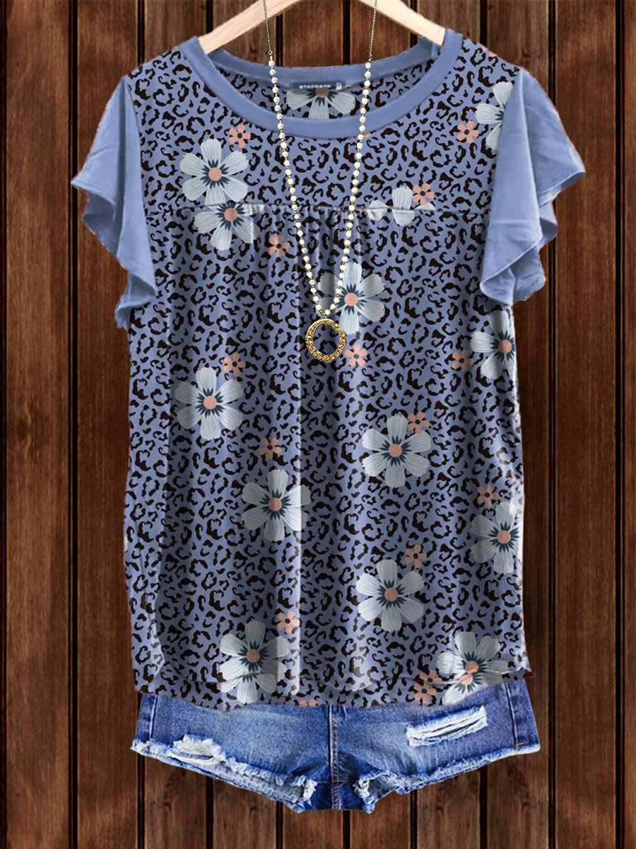 Leopard Print Bell Sleeve Ruched Top