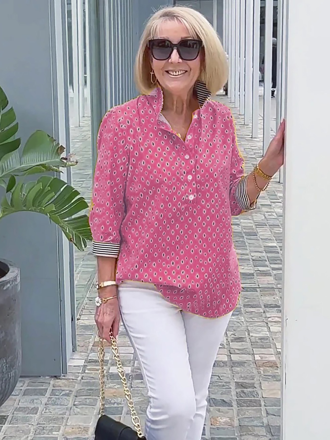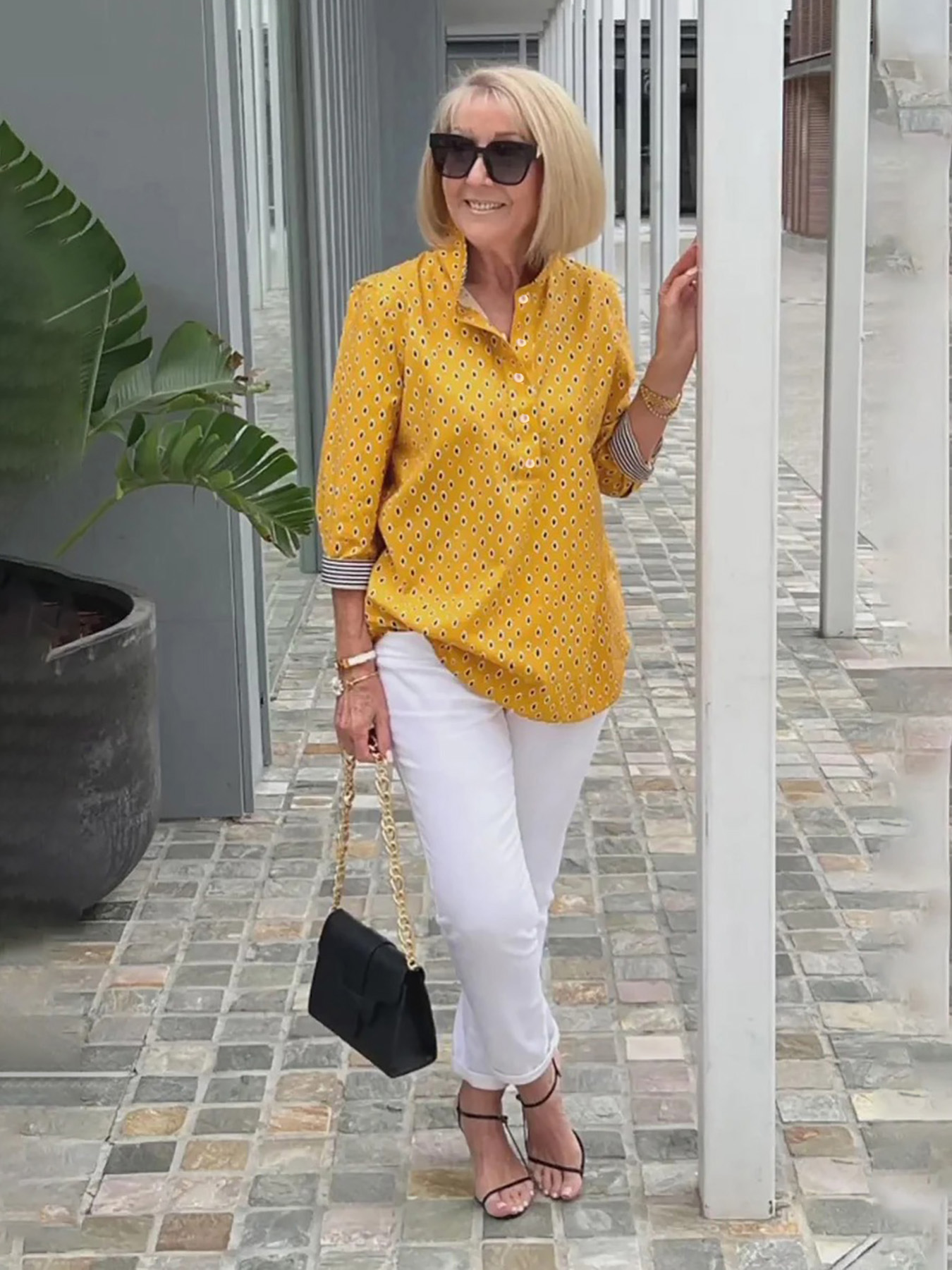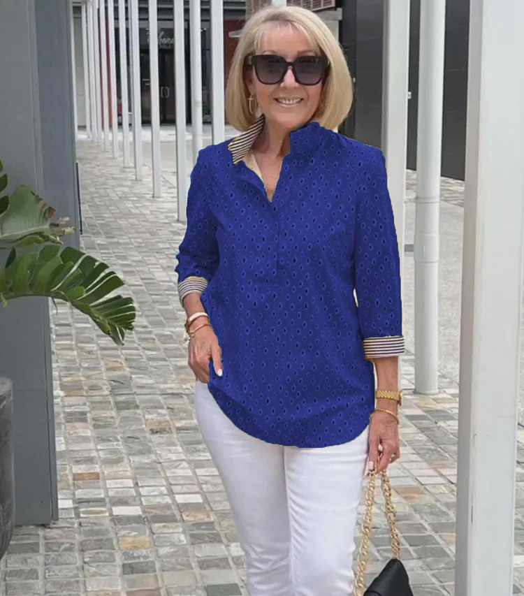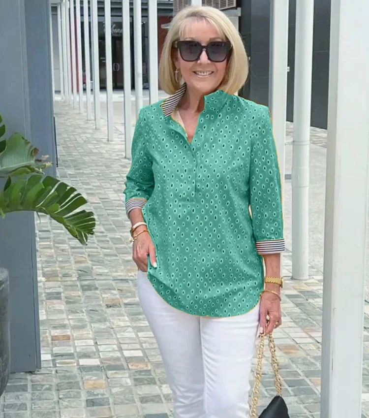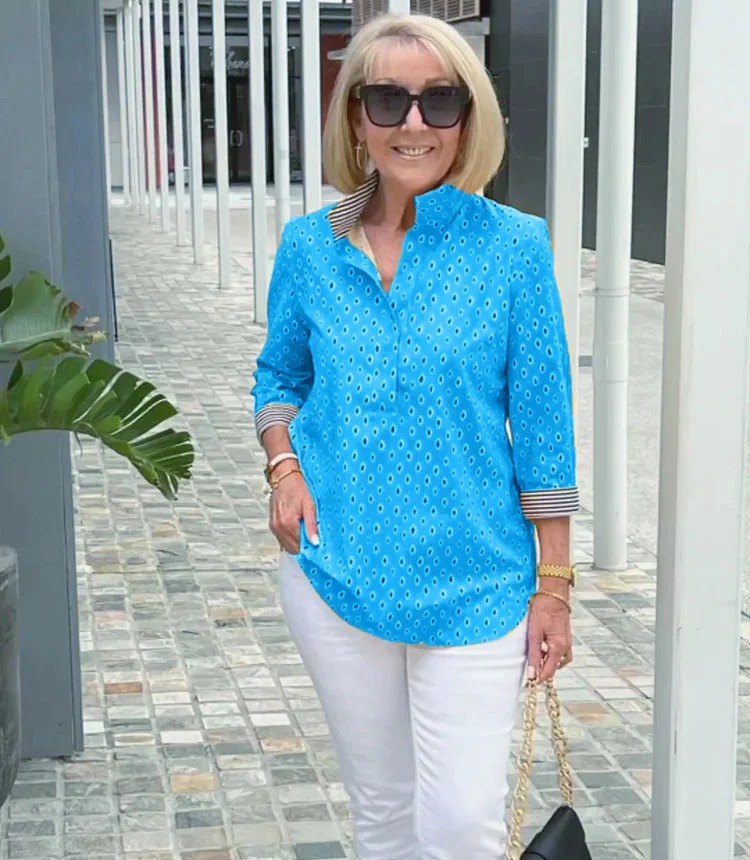 I love absolutely everything about this gorgeous SHIRT. The COLOUR is just stunning and looks fabulous with my white girlfriend ankle jeans. For added detail the black and white stripe on the collar and cuff, and buttons down the back, make this shirt a stand out for me.