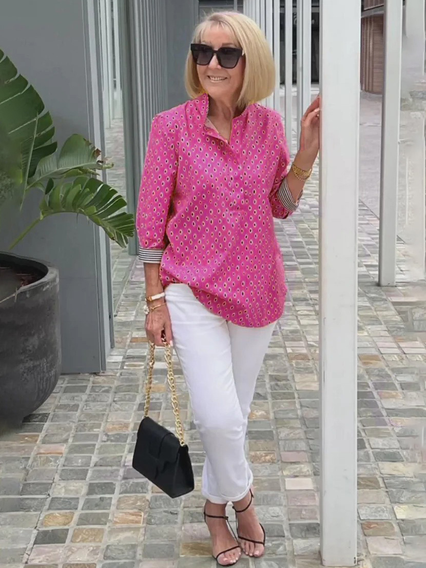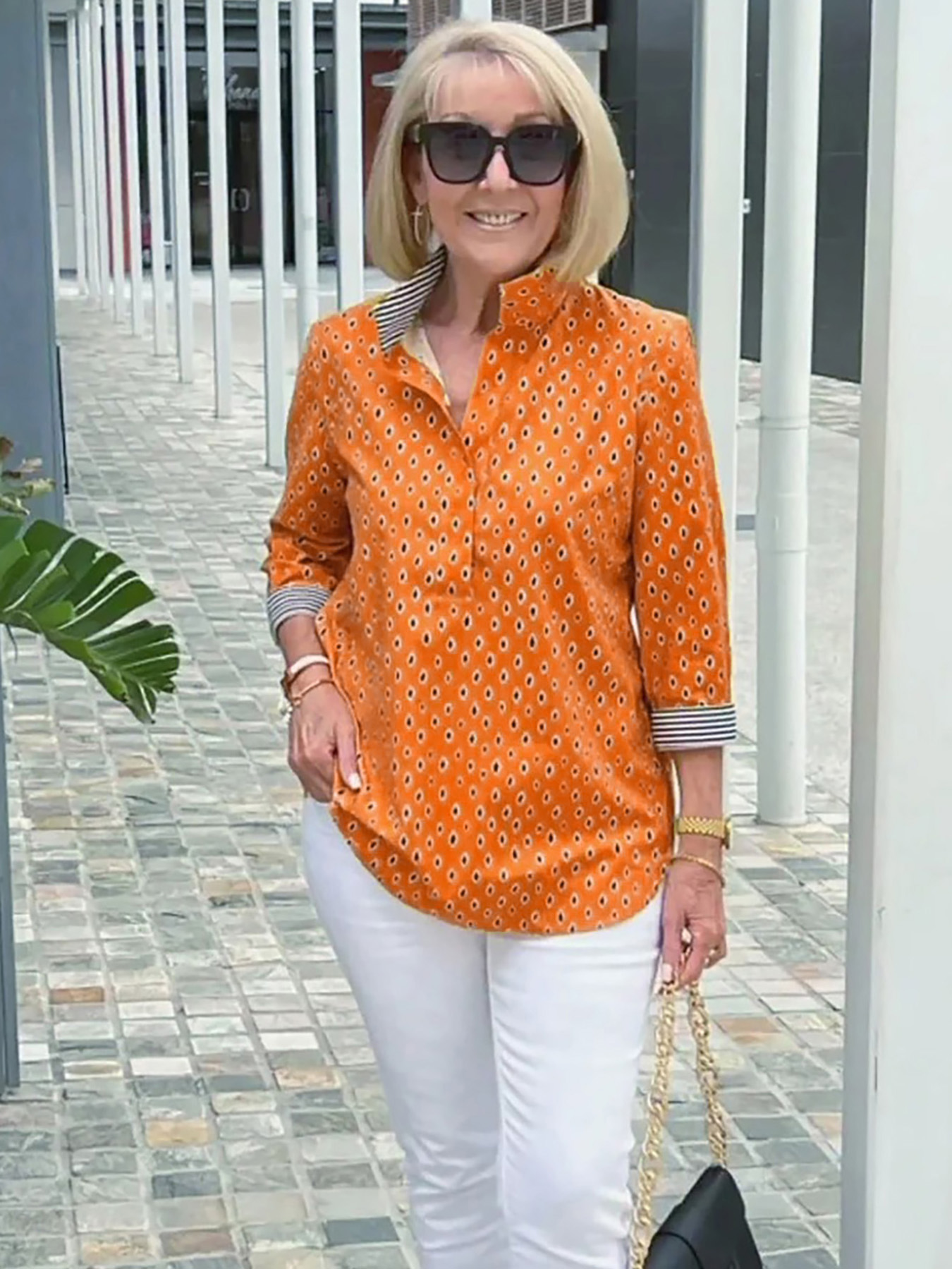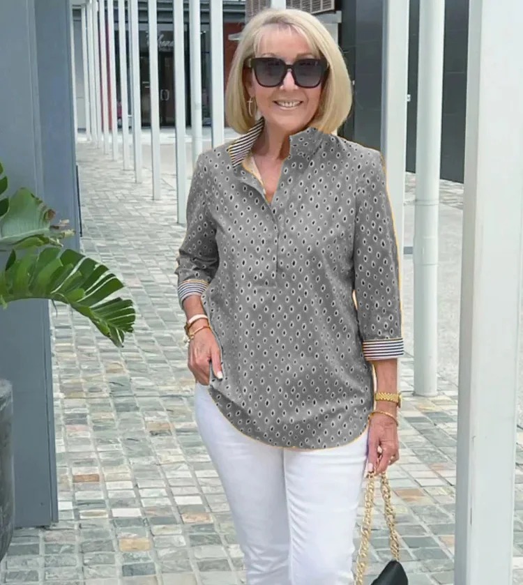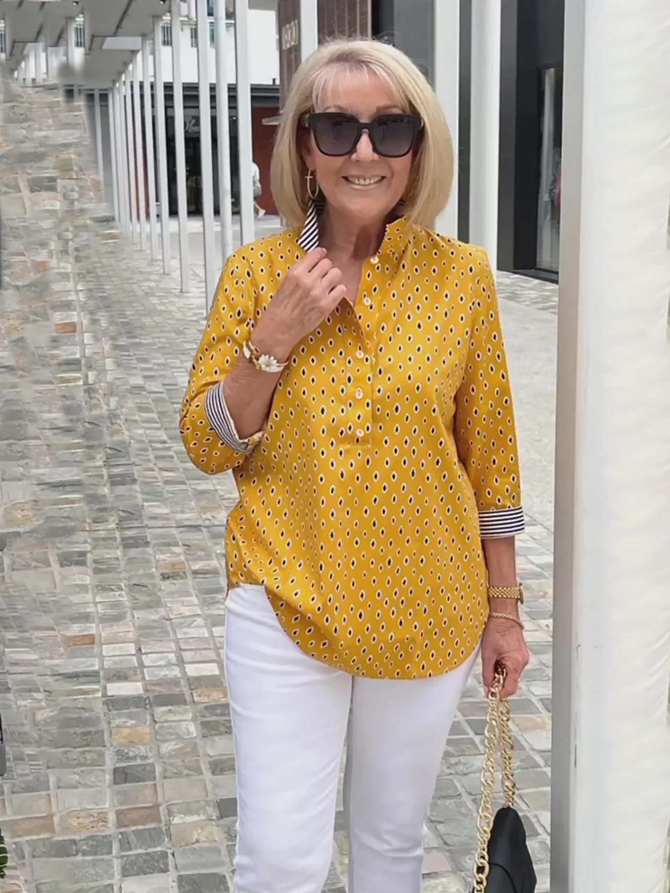 I love absolutely everything about this gorgeous SHIRT. The COLOUR is just stunning and looks fabulous with my white girlfriend ankle jeans. For added detail the black and white stripe on the collar and cuff, and buttons down the back, make this shirt a stand out for me.