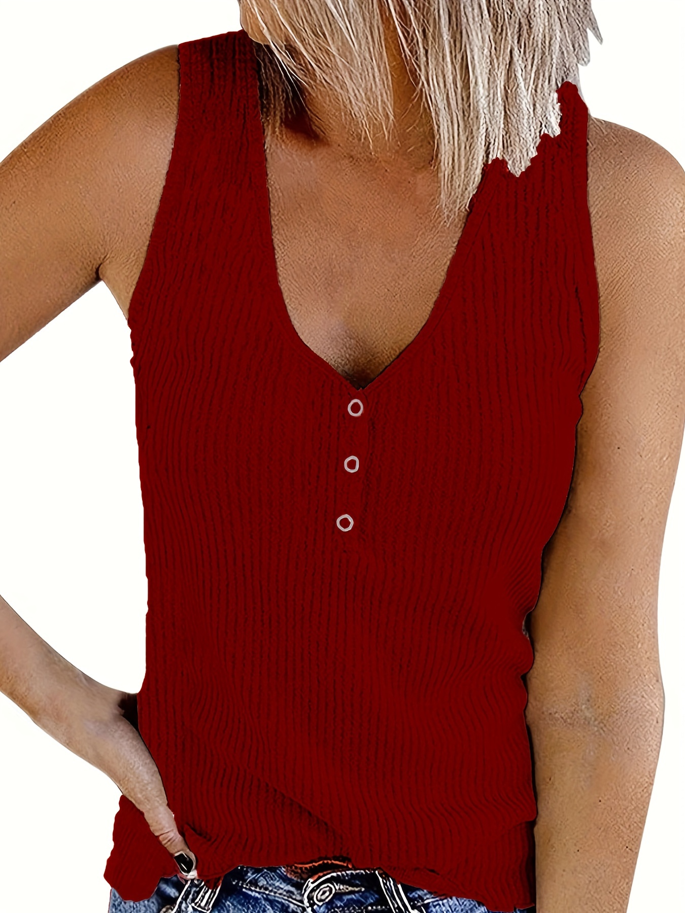 Solid Button Front Tank Top, Casual V Neck Summer Sleeveless Top, Women’s Clothing