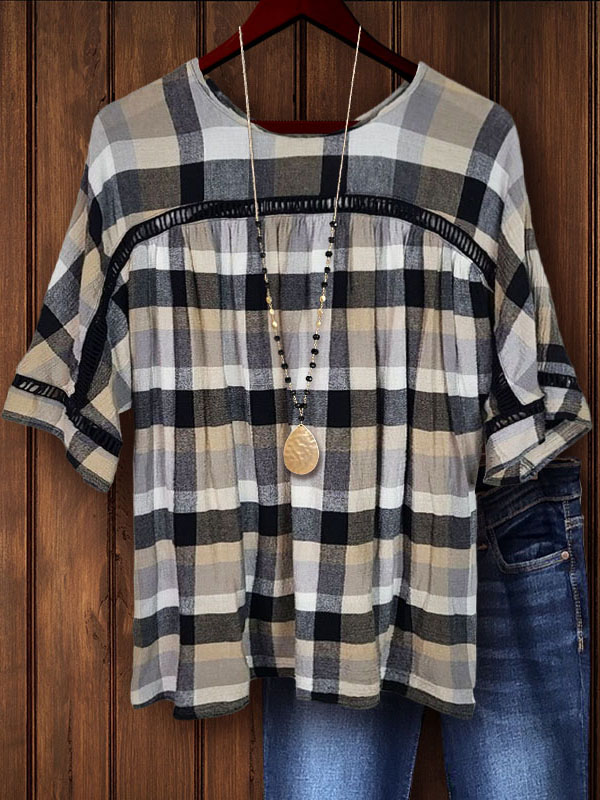 Pile Collar Short-sleeved Solid Color Casual Cotton and Linen Dress