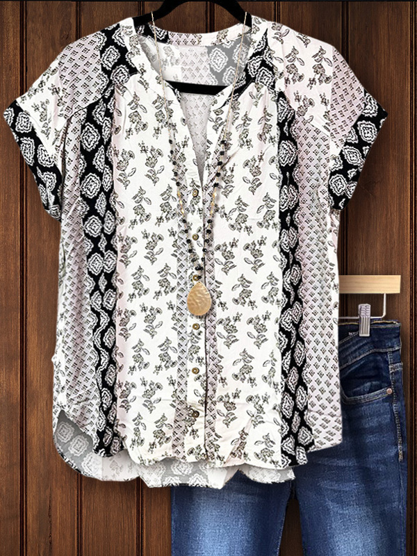 Embrace the beauty of spring and summer with this floral top featuring elegant ruffled sleeves. The combination of blue and white floral prints and flowing loose silhouette enhances the overall casual feel and durability. Perfect to pair with your favorite blue jeans.
