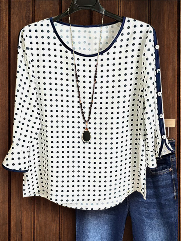 Cotton Linen Polka Dot Bat Sleeve Top