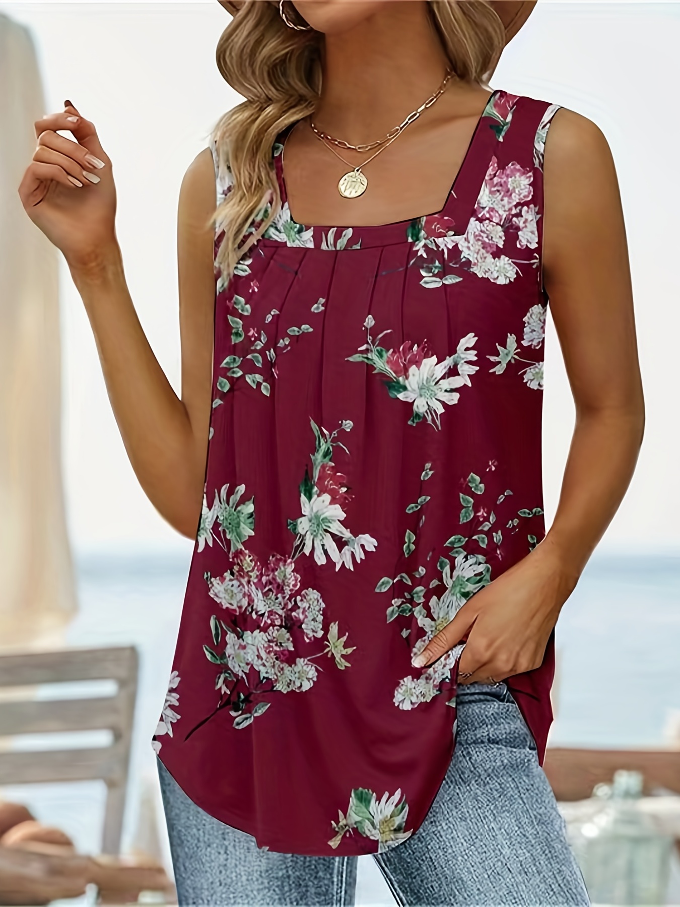 Stylish Design: Square neck and floral print add a touch of elegance to your outfit