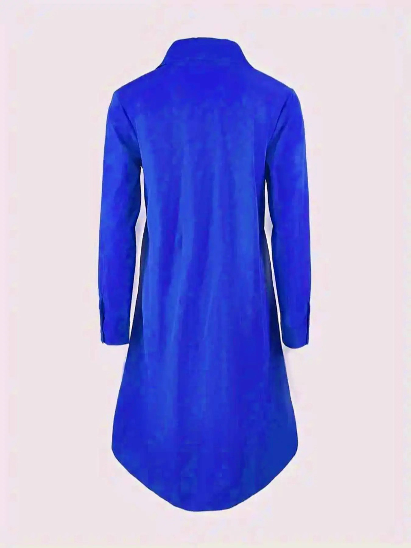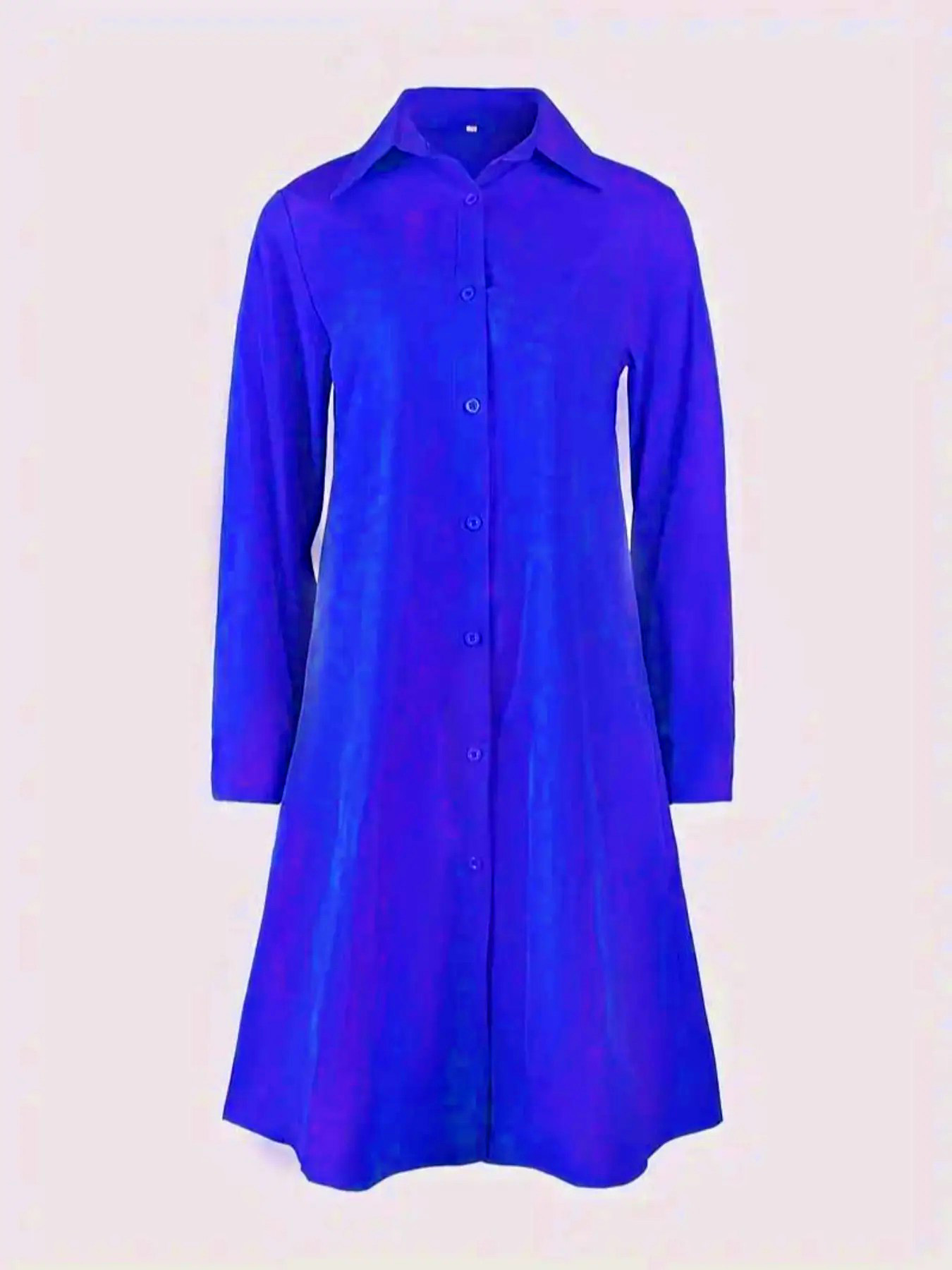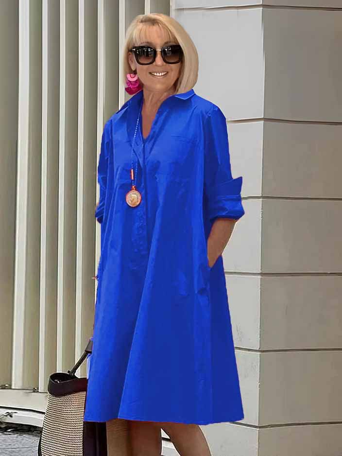 Spring-Summer New Type Fashion Temperament Shirt Collar Long Sleeve Pocket Mid-Length Dress